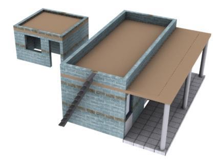 Following is a 3-D view of what a home might look like as per the first design done by the Abdalians. The unit at the back is the kitchen / toilet.