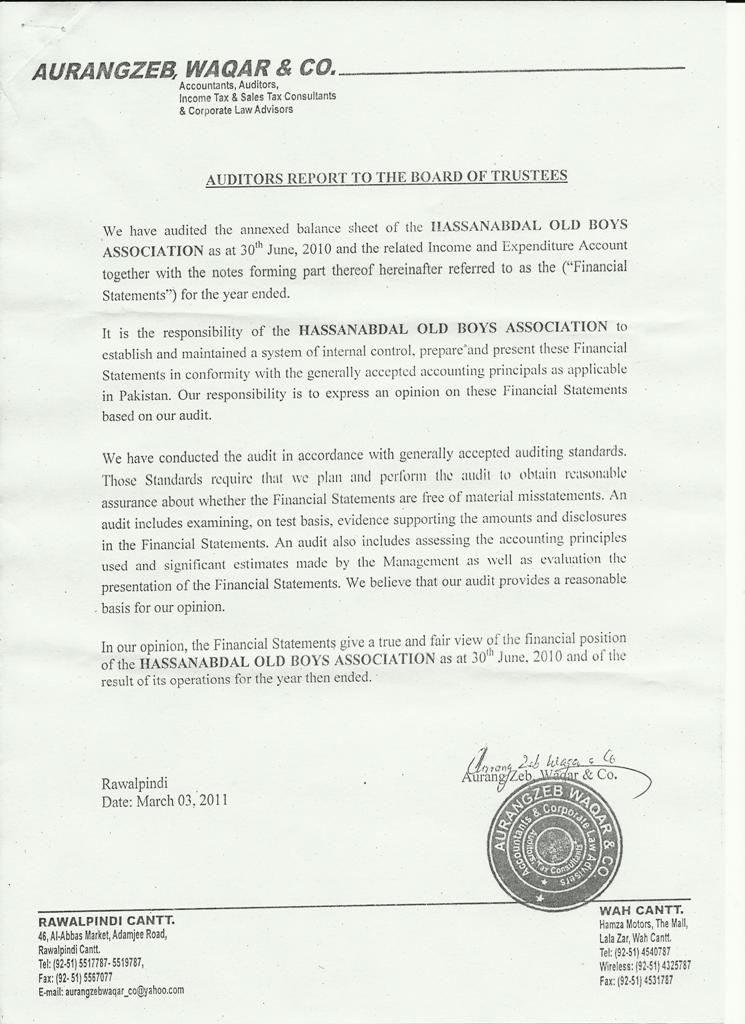 The annual accounts for the year ended 30-Jun-2010 were presented at the last AGM and got approved without any meaningful discussion. Tariq O. Rehman (H/17) although raised the point that the bulk of cash inflows consisted of donations received from Petarians' Association and the least that HOBA can do is to thank them for this great gesture.